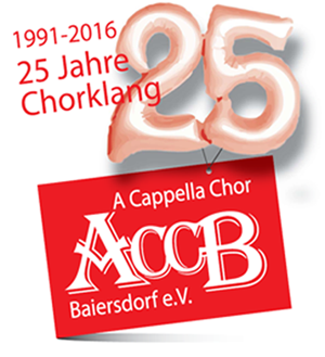 Der Chor feiert sein 25 jähriges Gründungsjubiläum! Das Jubiläum wurde am 09.04.2016 in der Kulturhalle der Stadt Baiersdorf mit den Mitgliedern und Freunden des ACCB, Vertretern befreundeter Chöre und des Fränkischen Sängerbundes sowie unserem Bürgermeister als Vertreter der Stadt in festlichem Rahmen gefeiert.